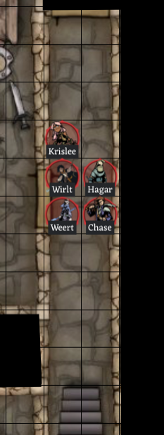 Hagar points to the East door and says “Wirit, why don’t you see if you can hear anything before I open that door. “ Hagar walks to the door and also listens for any sounds. (edited)