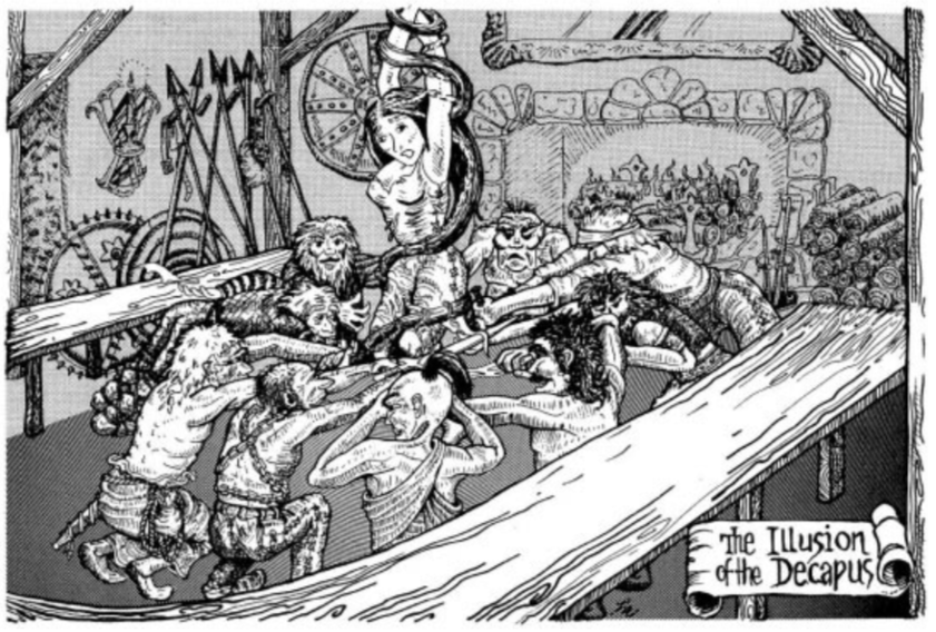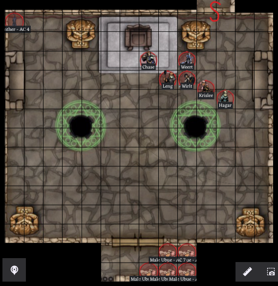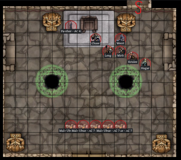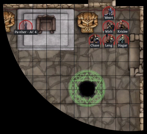 At the other end of the corridor, just given the layout of this section of the palace, you expect to find another secret door. Hagar does find one (rolled 18). He opens it to find the backside of a tapestry. You all move past the tapestry into a large hall, too large to see all of it with the light you are carrying.